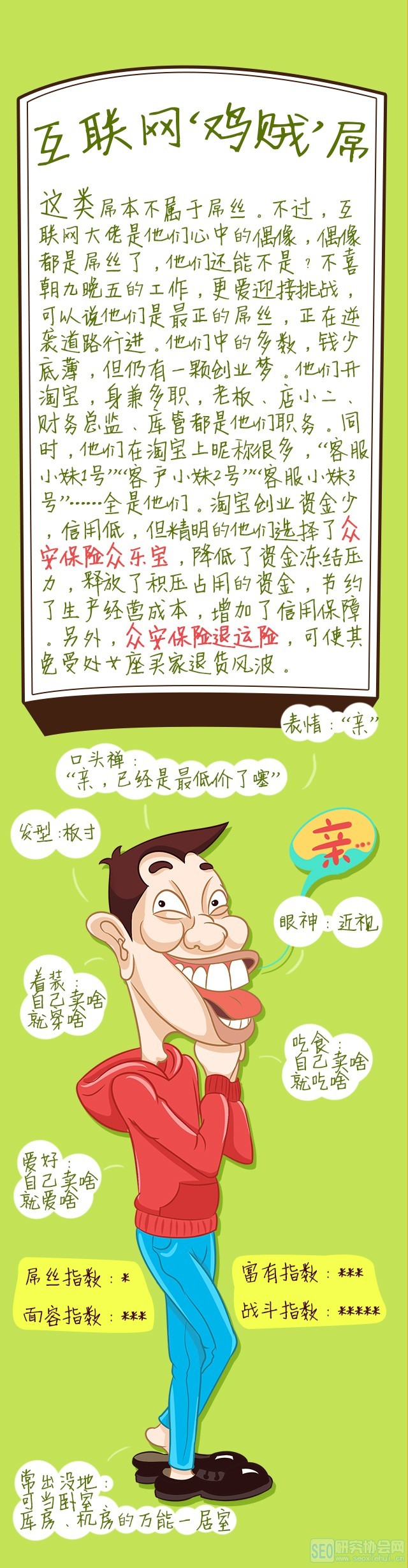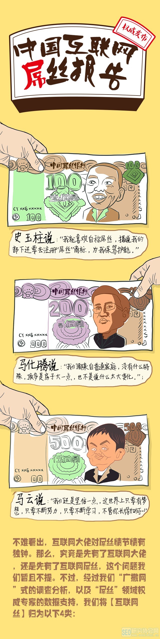 究竟是先有互联网大佬,还是先有互联网屌丝?这个问题我们暂且不提。不过,经过我们广撒网式的调查分析,以及屌丝领域权威专家的数据支持,我们暂且将互联网屌丝区分为以下几