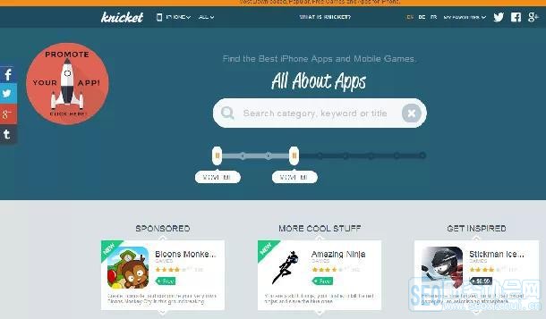 Knicket 搜索框下有一个滑块,让你可以轻松设定要找的应用价格区间。