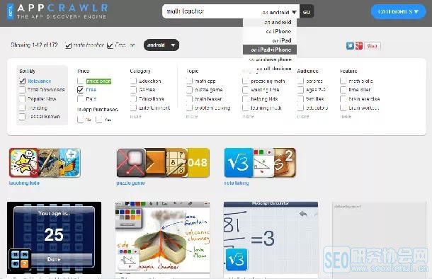 Appcrawlr 是基于网页的搜索引擎,它让你可以设定话题、类别、受众等小标准。