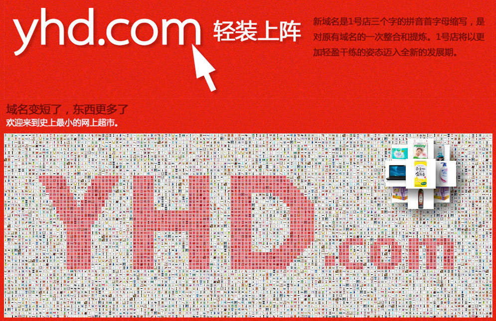 1号店:原域名 yihaodian.com,现域名 yhd.com(小编注:目前短域名跳转到原域名)