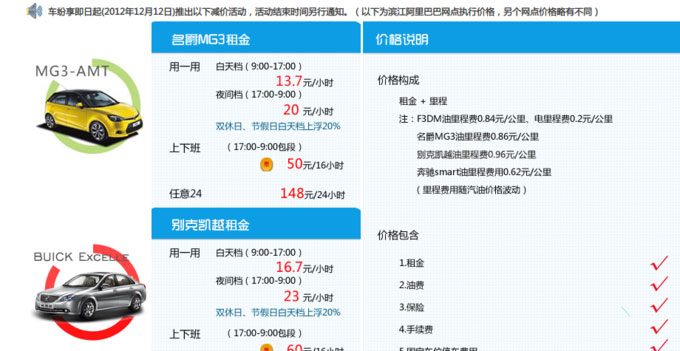 用户拿着车纷享的会员卡就能去车纷享的停车网点取车,之后按小时、车型的不同计费,还车刷卡自动结算。整个过程中没有车纷享的工作人员参与。而正是减除了人工成本,车纷享的价格有时甚至比出租车还便宜。比如车纷享提供的上下班服务(用车时间在头天下午 5 点到第二天早上九点),价格最低仅 50 元。
