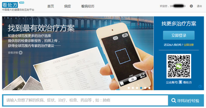 由于看处方才刚上线,目前只有网页版,苹果和安卓应用都在开发中,但值得一提的是,他们已经在微信平台上开始了运作,在看处方的微信公众号里,用户可以直接查看已经发布的共享病历和治疗方案,也可以通过微信管理自己的病历。