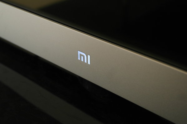 先从外观说起,下图是小米电视的开关,触摸式的开关方式和呼吸灯的显示效果很吸引人。当手指停留在“MI”上大约1秒便可进行开关机的操作,识别度很高。在开机、关机和待机的过程中,这个小米标志会开始规律、自然的闪烁。