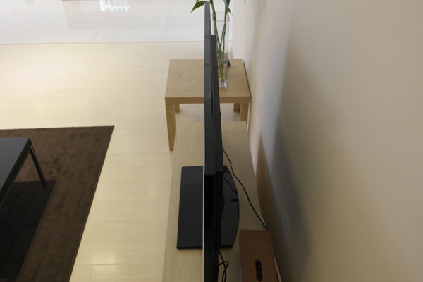 整体来看,小米电视的机身的确如雷军在发布会上形容的那般“超薄”,不过重量却十足的“霸道”,我展开双臂,尝试给这台47寸的电视抱起来,结果是举到一半,腰还没挺直,我就把它放回了原位。