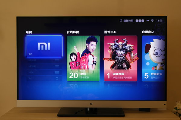 小米电视的开机速度足够迅速,也许用数字描述会显得乏味和抽象,那么用我自己的感受来形容的话,当我手指滑过开关,并到转身坐在沙发上后,小米电视就已经准备好了。小米电视在主页将内容简单分为了电视、在线影视、游戏和应用商店四个部分,并通过主次顺序和图文信息清晰的表现了出来,让使用者上手操作起来更容易。