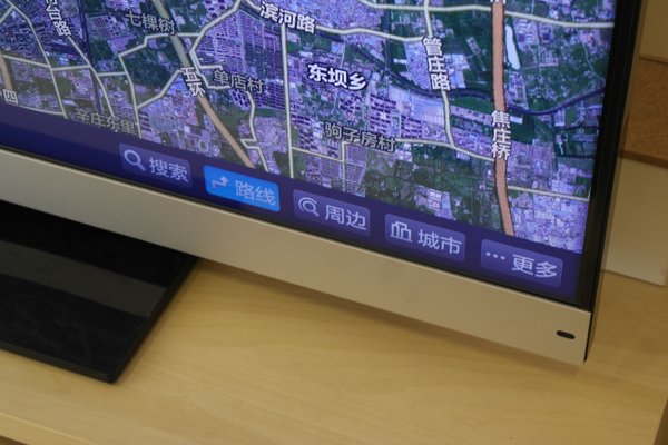 另一个我测试的应用是在线地图,但其整体设计实在不敢恭维。如果你坐在沙发上使用地图,那屏幕右下角的一行小字恐怕就是帮你免费测试视力的最佳机会。看来,虽然第三方的应用程序为小米电视做过单独适配和设计,但是仍然存在与其他智能电视一样的通病。