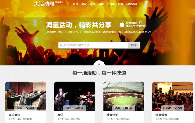 (目前是测试版本)就想改变这一状况,其创始人王晴和我说了一个作为 C 端用户的典型使用场景,以往他负责商务和市场方面工作的时候,常常错过某一个行业的会议,往往活动结束后看到媒体的报道,才发现自己错过了很有价值的内容。因此,他希望“大活动网”区别于豆瓣同城以及各种热闹的互联网活动,专注做有组织行为的付费活动市场,满足专业群体的需求。