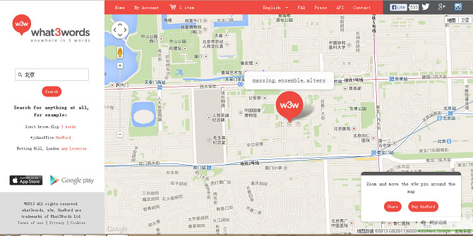 what3words 同时面向企业和个人用户服务。用户可以将通过 what3words 生成的任意位置字符串分享到 Twitter、Facebook、Instatgram 等社交网络上。系统会自动把更短、更易记忆的字符串匹配给人流密集度高的地点。
