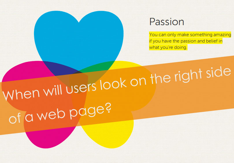从以前很多的可用性测试结论中我们都能认为,用户其实是很少去关注页面右侧的信息的,以至于用户其实忽略掉了很多我们提供给他们的引导路径。Peter Collins (Managing Director, WUP Ltd) 这个人呢组织搞了些实验和测试,发现实际上,页面右侧的信息并不是任何情况下都会被用户忽视。