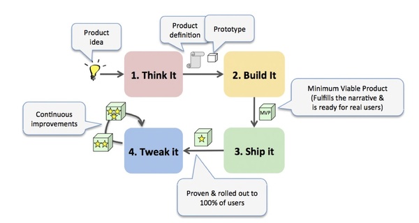 • Tweak It(优化) = 持续不断地提升产品。这是产品的最终状态,产品不断优化直到生命周期终止或产品重构(= 回到Think It)。