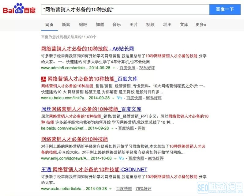 大家注意,搜索的时候,我用了双引号,使用来双引号之后,就去除来模糊匹配,只有100%有这篇文章的网站才会出现在搜索结果,数量为:11400