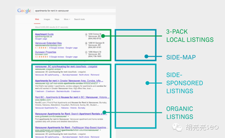 举例来说,如果你要从多伦多搬到温哥华,你需要找房子,使用谷歌搜索“apartments for rent”,实验就分析这些区域的情况:左侧顶部,右侧顶部,右侧下方,和左侧自然结果等用户的停留时间,点击等。