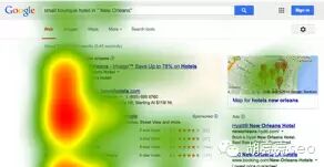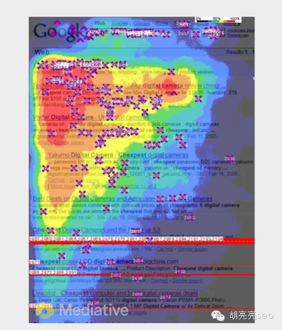 2005年SERP的典型特征是“金三角” 所有的视线都集中在左侧上方的角落,一般来说,如果你的结果不在这个金三角区域,那么你的网站用户关注会很少。