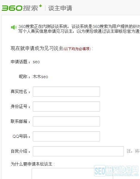 另外,可以申请谈主,坛主意味着什么我想大家都清楚,和吧主一样掌握生杀大全,360搜索正在火热认证各搜索词谈谈系统的见习谈主,填写个人真实信息即可申请见习谈主。