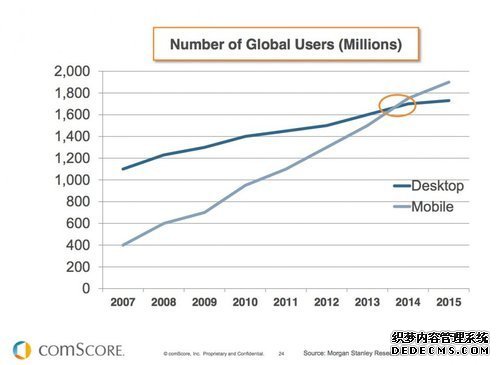 其一,桌面和移动端的用户数量趋势曲线