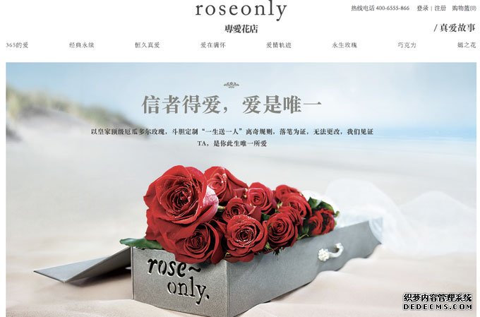 Roseonly专注于高端鲜花市场,打出“一生送一人”的规则:如果要在该花店买花,一辈子只能送一位佳人。已经从最开始的很少几款扩展到现在的30多款鲜花产品。