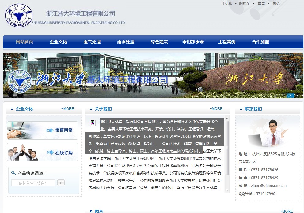 浙江浙大环境工程有限公司是以浙江大学为背景和技术依托的高新技术企业。主要从事环境工程技术研究、开发、设计、咨询、工程建设、运营、管理等,享有环境影响评价甲级、环境