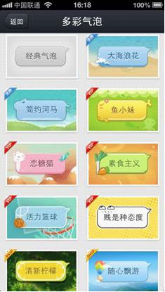 为用户在聊天中提供个性化和趣味性的体验是手机QQ当前的一个突破点。此轮探索中最成功的莫过于“多彩气泡”功能。用户选择自己心仪的“多彩气泡”形象后,在和他人聊天过程中,发送的信息都会承载在个性化的气泡中。该功能上线两周后,就有超过5500万的用户使用其来装扮自己的聊天场景。不少用户在应用商店发表评论纷纷指明对该功能的喜爱。