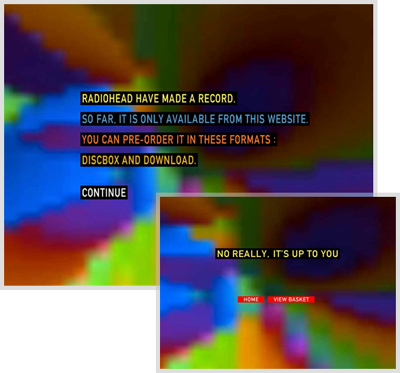 音乐产业曾经有一个很简单的公式:人才+唱片公司+塑胶碟=美元。但数字化和技术的发展使这个公式不再适用。像Radiohead的ThomYorke这样创新与冒险的先驱就想出了一个闻所未闻的怪招:乐队的第七张专辑《彩虹之中》发行没通过任何一支发行公司,唱片中的歌曲全部通过网络下载,而价格直接由歌迷来定:你想付多少就付多少。这一突破常规的举动在业内引起了轩然大波,但他们的策略为他们在预售期带回了300万次的下载量和1000万美元的收入,成为这个乐队最大的一次商业成功。